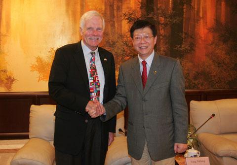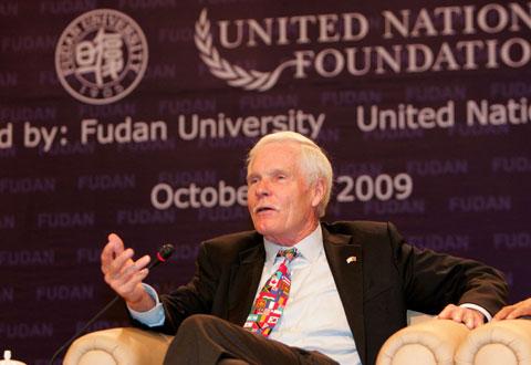 校长杨玉良出席座谈并致辞。此行来访人员包括联合国基金会董事会主席、CNN创始人、联合国基金会董事会主席特德•特纳,联合国基金会主席蒂莫西•沃思,孟加拉国经济学家、2006年诺贝尔和平奖得主穆罕默德•尤努斯,哈佛大学历史学系经济史教授艾玛•罗斯柴尔德,联合国基金会中国董事、北京大学国际关系学院教授袁明,中美关系专家、我校国际关系与公共事务学院教授倪世雄等。