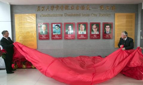 桑国卫和秦绍德共同为由周维善、洪孟民、侯惠民、桑国卫、金国章和李大鹏6位药学院杰出校友组成的院士墙揭幕;桑国卫欣然为母校题词:“复旦大学药学院”;药学院将特意篆刻的一枚姓名印章赠送给桑国卫院士作纪念。