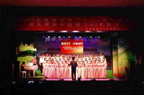 在歌唱祖国“从此走向繁荣富强”的优美旋律中,“弦歌甲子·情满相辉——2009年复旦大学“一二·九”歌会圆满落下帷幕。
