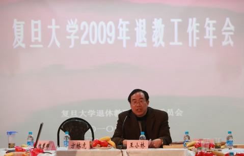 在会上,党委常委、组织部部长秦莉萍宣读了退教工作2009年各类获奖者名单。校退管会常务副主任杨慧群汇报了2009年退休教职工工作。退管分会负责人、信息学院党委书记朱建艺,中文系退休工作联系人、年轻教师平媛,获奖者代表、复旦老年合唱团副团长舒宝刚做了大会发言。