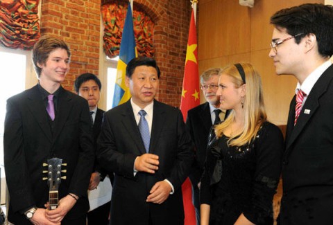 在欣赏孔子学院学生演唱的《我的中国心》和《塞北的雪》等歌曲后,习副主席与青年学子进行了亲切交谈,鼓励同学们努力学习汉语,更多了解中国文化,不断为中瑞世代友好添砖加瓦。工信部部长李毅中、中国驻瑞典大使陈明明等陪同参观了孔子学院。