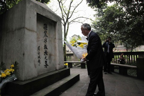 新闻中心讯 今年清明节,位于重庆夏坝的复旦大学旧址迎来了百余位复旦师生和抗战时期曾经在北碚夏坝就读的复旦老校友。他们汇集在嘉陵江边,共同悼念和缅怀所有抗战期间在此牺牲的复旦爱国师生,并向被日军轰炸牺牲的孙寒冰教授墓园献花。时值复旦大学建校105周年,修葺一新的抗战时期复旦大学北碚旧址纪念馆也于4月3日正式开馆。据悉,新开放的纪念馆内内再现了复旦大学北碚时期的历史和重要人物,尤其是重点展示了对重庆出贡献的复旦校友和牺牲在重庆的校友事迹。重庆市副市长谢小军,复旦大学党委书记秦绍德,复旦大学前校长王生洪,副校长许征等复旦和重庆市领导出席了开馆仪式。