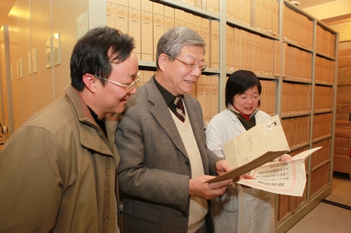 调研中,杨玉良校长先后深入到档案库房、计算机机房和各业务科室,仔细查看情况,认真听取有关人员的介绍。在查档室,杨校长与正在查阅校史材料的金光耀教授亲切交谈,了解学者对档案利用的要求和建议。在库房,杨校长详细询问了各门类档案的分布情况,查看了一些重要档案和名人手稿、实物等有特色的档案,表示以往历史上一些好的做法,值得现在学习和借鉴。在机房,杨校长详细了解了档案数字化工作的进展,查看了库房的保管条件。
