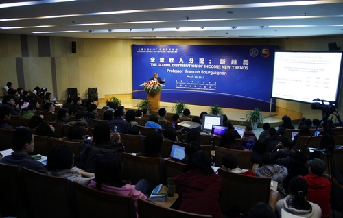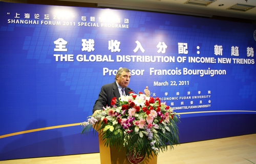 新闻中心讯  3月22日下午,“上海论坛2011”专题学术活动在复旦大学经济学院举行。著名法国经济学家、前世界银行首席经济学家、巴黎经济学院院长弗朗索瓦·布吉尼翁教授为复旦师生带来了一场主题为“全球收入分配新趋势”的精彩演讲。经济学院院长袁志刚教授主持了整场讲座。