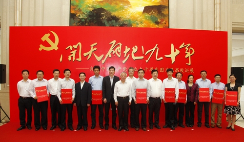 新闻中心讯 由市委宣传部、市教卫党委和新华社上海分社共同主办、光大证券协办的“开天辟地九十年”大型图片展高校巡展,16日在复旦大学举行启动仪式。复旦大学党委书记秦绍德,市委宣传部副部长、市文明办主任马春雷和新华社上海分社社长慎海雄共同启动高校巡展。