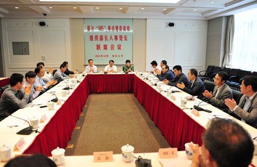 10月13日,部分“985工程”重点建设高校组织部长人事处长联席会议在我校举行。校党委书记朱之文出席会议开幕式并讲话。校党委副书记王小林、挂职校长助理刘仁义出席有关活动。