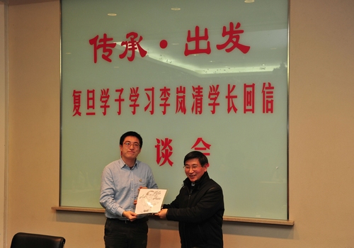 新闻中心讯 1月5日,复旦学生学习李岚清学长回信座谈会在光华楼举行。校党委副书记陈立民代表朱之文书记和杨玉良校长,传达了我校杰出校友李岚清同志给校学生会的回信内容。