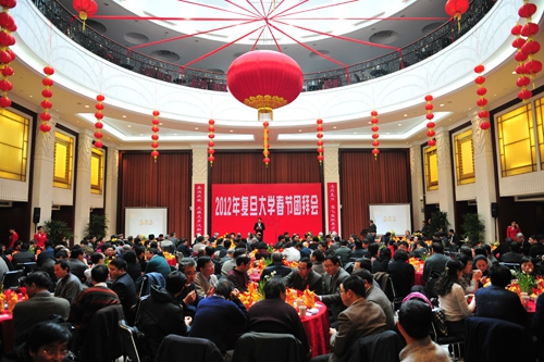 新闻中心讯 1月16日上午,2012年春节团拜会在光华楼十三楼多功能厅举行。校党政领导、专家学者代表、各单位、部处和各附属医院主要负责同志、各民主党派负责人,以及部分老同志等270余人欢聚一堂,共迎壬辰年新春。会场布置朴素雅致,花芳茗香。场内气氛喜庆祥和,笑语不断。