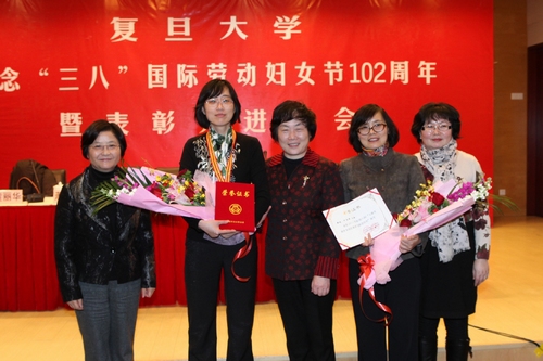 大会颁发了获得2010-2011年度上海市、市教育系统、复旦大学“巾帼创新奖”、“巾帼文明岗”、“比翼双飞模范佳侣”等先进奖项的个人和团队,并对“复旦女性家园志愿者”颁发了证书。药学院蒋晨、肿瘤医院血管通路护理小组张晓菊、管理学院郑明分别作为获奖代表发言。