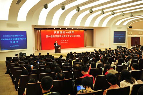 新闻中心讯 5月22日下午,复旦大学庆祝建校107周年第46届科学报告会暨学术文化周开幕式在光华楼举行。