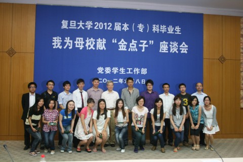 新闻中心讯 6月8日,2012届本(专)科毕业生“我为母校献金点子”座谈会在逸夫科技楼举行。校长杨玉良、校党委副书记陈立民、副校长陆昉出席座谈会,与毕业生代表共话学校发展。