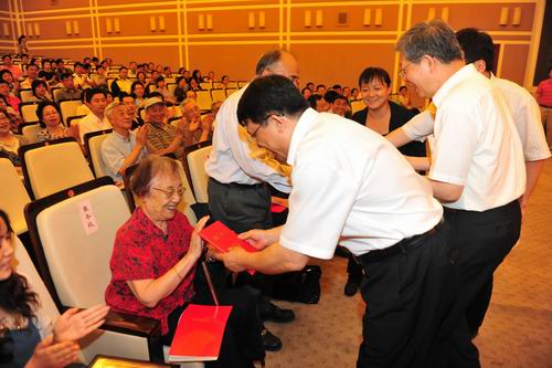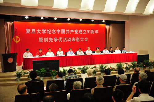 新闻中心讯 复旦大学庆祝中国共产党成立91周年暨创先争优活动表彰大会6月28日下午在光华楼举行。校党委书记朱之文讲话,校长杨玉良主持会议。
