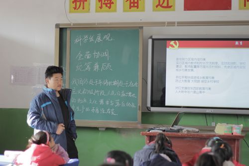 在宁夏西吉、贵州乌江,复旦大学的研究生支教队员,也利用现代网络和多媒体技术,主动结合十八大的开幕直播,给大山里的孩子们开展起爱国主义教育和国情教育。为他们介绍国家社会的发展状况以及社会主义强国的美好未来。