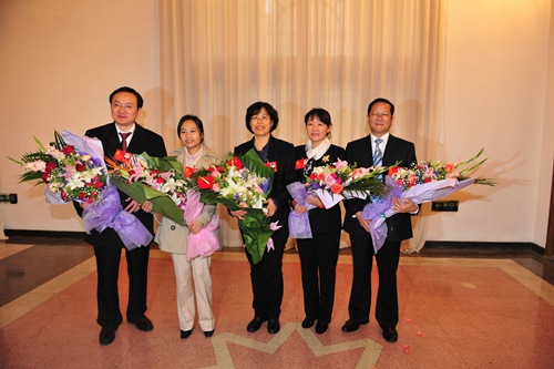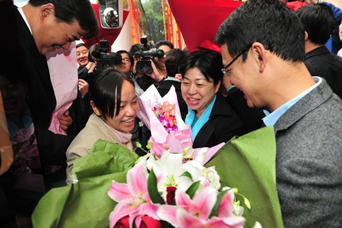 校学生工作部部长许玫等受学校委托前往上海展览中心迎接。