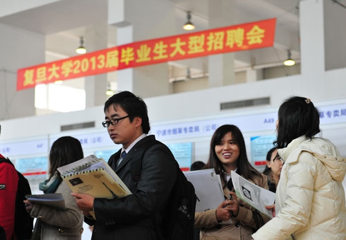 2013届毕业生求职热情比往年偏高,学校各类招聘会毕业生参与数量均较多。从目前毕业生协议书领取来看,目前是第一轮招聘用人单位OFFER发放的集中期,截至上周五统计,复旦今年学生协议书领取数量比去年多89份,说明我校毕业生由于培养方面的优势在目前市场普遍偏严峻得情况下得以凸现,学生的就业竞争力还是比较明显的。