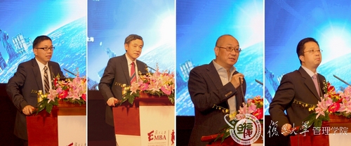 朱之文在致辞中,回顾了复旦大学开展EMBA学位教育的十年历程,充分肯定了EMBA项目10年和恢复管理教育37年来的办学成绩。他表示,作为一所地处改革开放前沿的国家重点大学,我们要不断地提高工商管理教育水平,不断打造EMBA优质品牌,为国家和社会培养更多有责任、有知识、有思想、有能力的高级工商管理人才。他指出,提高工商管理教育水平,必须认真研究中国特色社会主义的伟大实践,必须继续坚持国际化的开放道路,必须始终重视增强学科的竞争能力、增强核心竞争力。