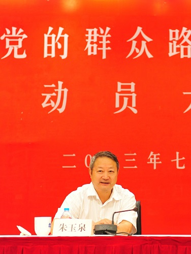 朱玉泉在讲话中代表中央督导组对开展好我校教育实践活动提出了明确要求。他指出,中央对这次教育实践活动的基本要求主要体现在,一是贯彻“照镜子、正衣冠、洗洗澡、治治病”的总要求;二是聚焦作风建设,坚决反对形式主义、官僚主义、享乐主义和奢靡之风;三是以整风精神开展批评和自我批评;四是坚持领导带头;五是注重建立长效机制。