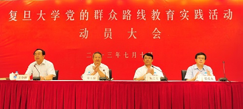 他强调,开展教育实践活动是团结带领广大师生员工加快建设世界一流大学的必然要求。学校事业的发展离不开全校师生员工的团结奋斗。一部复旦大学的发展史就是全校上下共同努力的奋斗史,就是一部不断调动和发挥师生员工积极性的群众工作史。师生员工是创建世界一流大学的主体,是学校历史的创造者。要通过开展教育实践活动,弘扬党的优良传统,教育引导各级干部牢固树立群众观点,践行宗旨意识,坚持群众路线,团结全校上下为加快建设世界一流大学而奋斗。