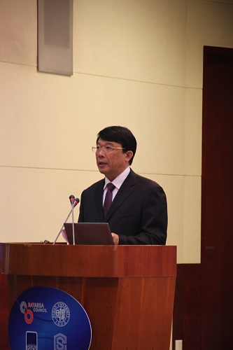 杨浦区委常委、副区长唐海东,复旦大学信息科学与工程学院院长郑立荣,美国能源基金会执行总裁王江燕作主旨演讲。