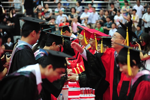 学位授予仪式庄严而肃穆。学士帽上的流苏从右边拨到了左边,这是一种荣耀,更是一种鞭策。2014届毕业生中不乏杰出的佼佼者,他们分别在学术、实践、文体等领域取得了一定的成绩。校党委副书记尹冬梅在毕业典礼上宣布了“毕业生之星”的名单,并为他们颁发证书。来自新疆的计算机科学技术学院毕业生阿拉法特•居来提代表毕业生发言,他抒发了对母校的依依不舍和深深爱意,也表达了全体毕业学生的承诺,将带着复旦精神的印记走上不同的人生道路,勇于担当,奉献社会,成为一个善良、正直的人。阿拉法特•居来提在校期间学习成绩优异,作为“莙政学者”在科研的道路上努力前行,未来将前往美国加州大学圣地亚哥分校继续攻读博士学位。