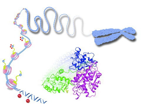 原来“DNMT3A”蛋白酶存在着“准备”和“工作”两种状态。在“准备”状态时,“DNMT3A”呈低活性状态,“工作”状态时“DNMT3A” 呈高活性状态。作为执行DNA甲基化修饰的“DNMT3A”蛋白酶其内部有两个“单元”,一个是“功能单元”,另一个是“调节单元” ,“功能单元”负责催化工作,“调节单元” 专司调节“功能单元”的活性。在“准备”状态,“调节单元”会携手“功能单元”并抑制“功能单元”与DNA的结合,从而使DNMT3A处于低活性的状态,以保证DNMT3A不会随意在DNA上建立甲基化修饰。而DNA上大量存在的一种 “H3组蛋白”会联手“调节单元” ,引导其离开“功能单元”,使“功能单元”充分暴露并容易接触到DNA,此时,“DNMT3A”蛋白酶就表现为高活性的“工作”状态。如果“H3组蛋白”上处于第四位的赖氨酸发生甲基化修饰,DNMT3A也不会被激活。由此看,生命体正是“聪明”地利用该机制,保证了只有在无甲基化修饰“H3组蛋白”存在的基因组附近,DNMT3A才处于高活性状态,周围的DNA才可以发生甲基化修饰,使得甲基化修饰只出现在需要的DNA区域,也就是说,如果活性调节失控就会导致白血病等疾病发生。