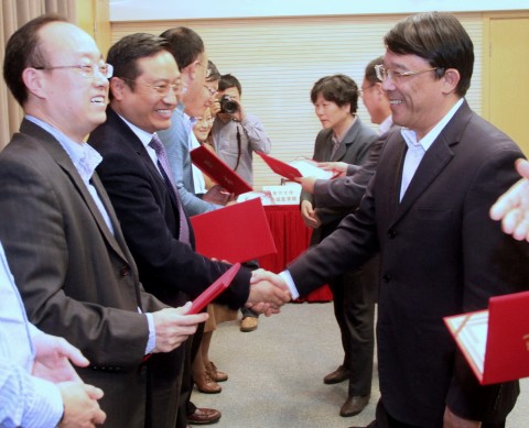 新闻中心讯 (作者 孙国根 恽小婧 摄影 杨光亮) 上海医学院为打破学科界限, 11月7日,复旦大学基础医学院院长汤其群和复旦大学附属中山医院院长樊嘉代表各自方在枫林校区签署3份协议:《复旦大学基础医学院与复旦大学附属中山医院学科建设合作框架协议》以及在此框架协议下已率先启动的《基础医学院病理学科与中山医院相关学科合作协议》和《基础医学院人体解剖学科与中山医院相关学科合作协议》。此标志着双方的深层次合作已经拉开帷幕,对探索如何建立基础与临床结合的最佳模式,基础医学院如何与其他附属医院交叉合作有重要意义。