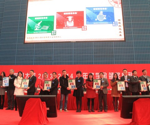 典礼由校党委学生工作部部长徐瑾主持,党委研究生工作部部长陈殷华作《复旦大学2013-2014学年奖学金评审工作报告》。校领导陆昉、冯晓源和校奖(助)学金评审委员会委员、对外联络与发展处处长潘俊分别宣读有关奖学金的获奖名单,并与主席台上的领导和嘉宾一起为获奖学生颁奖。 据统计,本年度我校学生获得各级各类奖学金14000多人次,奖金总额近8000万元。其中,社会各界在我校设立的冠名奖学金有42项,奖励学生1000余人,其中17家设奖单位的代表出席了颁奖典礼,为获奖的学生颁发奖学金证书,并接受了获奖学生设计的纪念明信片。明信片以“修德明道”、“博学笃志”、“求真致远”为主题,三张明信片上分别印有的田字格、毛笔、竹筒、学士服、显微镜等图案,将传统与现代紧密结合,一方面印证了理想是古往今来推动社会进步的重要动力,另一方面也凸显出复旦人应有的理想追求。