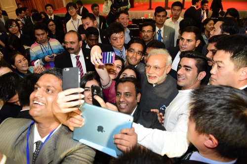 揭牌仪式后,莫迪总理发表演讲。他说,在印度哲学中,智慧与知识来自四面八方,没有界限,推动人类发展。他表示,中国学生朗诵了印度史诗,为大家分享其中的理念。通过甘地研究,这个新成立的中心可以向世界传达一个重要讯息:甘地思想如今也是有效的。他表示,中国和印度之间的文化关系非常密切,有一个相似的地方,就是两国人民都很渴望智慧和知识,就如千年之前玄奘法师印度取经,还有很多印度人来到中国,都是汲取新知。“开放经济,是件很重要的事情,同时是件很容易的事情;邀请游客去彼此国家游览,也是件很容易的事情;但是打开这扇智慧与知识的大门,并不容易,这需要内心的力量。”莫迪认为,经济发展会推动国家发展,知识的发展更有利于世世代代利益。最后莫迪祝愿:中印人口占世界三分之一,两国携手努力取得进展,包括在知识方面的进展,都能向世界展示新的生活方式。演讲现场气氛热烈,全场起立向总理致以掌声。演讲结束后,莫迪总理走到学生们中间与大家合影。
