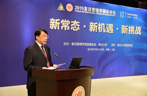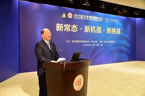 7月18日,由复旦管理学奖励基金会和复旦大学联合主办的2015复旦管理学国际论坛在上海开幕。正值复旦管理学奖励基金会成立十周年,本次论坛的主题为“新常态•新机遇•新挑战”。第十届全国政协副主席、复旦管理学奖励基金会理事长徐匡迪,复旦大学党委书记、复旦管理学奖励基金会执行副理事长朱之文出席论坛开幕式并致辞。工信部原副部长杨学山应邀出席了论坛开幕式。开幕式由中国工程院院士、中企联特邀副会长、复旦管理学奖励基金会副理事长兼秘书长王基铭主持。