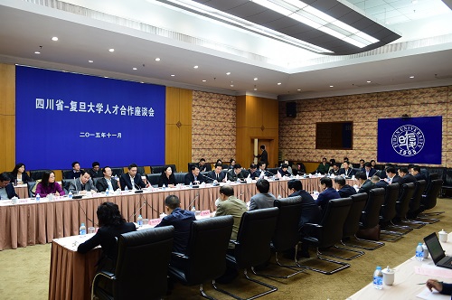 11月18日上午,四川省-复旦大学人才合作座谈会在我校举行。四川省委常委、组织部部长范锐平,我校党委书记朱之文、常务副校长包信和、副校长许征以及省校双方有关部门和单位的负责同志出席座谈会。