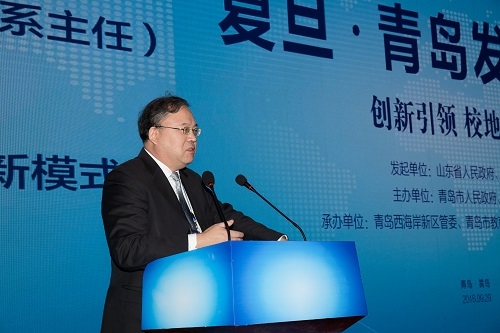 新闻中心讯 为了贯彻落实山东省人民政府和复旦大学签署的战略合作协议,率先实施山东省《关于深化科技体制改革加快创新发展的实施意见》,快速响应青岛市《关于深入推进科技创新发展的意见》,扎实推进复旦大学服务国家战略,9月29日,以“校地共建 创新引领”为主题的“2016(首届)复旦•青岛发展论坛暨复旦大学创新成果博览会”(以下简称“论坛”)在青岛西海岸新区举行。同日,复旦大学青岛研究院正式揭牌。