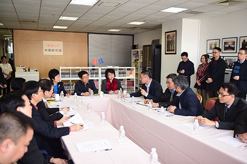 新闻中心讯 12月5日上午,教育部部长陈宝生一行在上海市副市长翁铁慧的陪同下,来到复旦大学考察调研。复旦大学党委书记焦扬同志对学校整体情况作了简要介绍。常务副校长包信和、校党委副书记刘承功、副校长金力、副校长桂永浩分别介绍了人才培养项目、文、理、工、医等各学科“双一流”建设重点项目的情况。