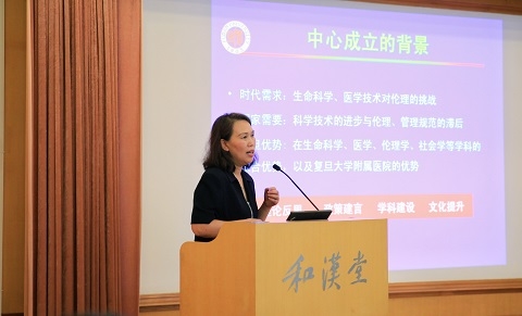 会议在复旦大学枫林校区治道楼二楼的和汉堂举行。生命医学伦理研究中心主任、哲学学院教授王国豫介绍了中心成立以来,在组织申报国家科技部重点专项《精准医学的伦理、政策与法规框架研究》、推动医院伦理委员会建设、与基础医学院一起组织医学人文大类核心课程、推动生命关怀协会的成立,与生命关怀协会、肿瘤医院和复旦大学团委等联合主办第一届生命文化节等方面所做的工作。王国豫重点介绍了科技部重点专项《精准医学的伦理、政策与法规框架研究》的研究内容。该项目属于“精准医学计划”专项的一部分,也是科技部第一次将人文社科方面的主题研究纳入到国家重点研发计划重点专项中。经过半年多的努力,该项目已经成功获得科技部重点专项立项。未来三年中心将集中主要精力,与参与该项目的其他单位的团队一起,围绕“构建安全可靠面向生物医学大数据、跨系统样本和数据共享的保障体系;以尊重、有利、责任为原则的伦理框架和法律监管体系;以及以公平和有效为原则的精准医疗保障的政策研究”三个课题,开展从理论研究到政策应用的全方位研究,以期为我国政府建立具有我国自己话语权的精准医疗伦理政策法规的框架体系提供学理和政策支撑。并藉此打造一支跨学科队伍,力争成为未来国家医学生命伦理学和卫生政策研究的智库。