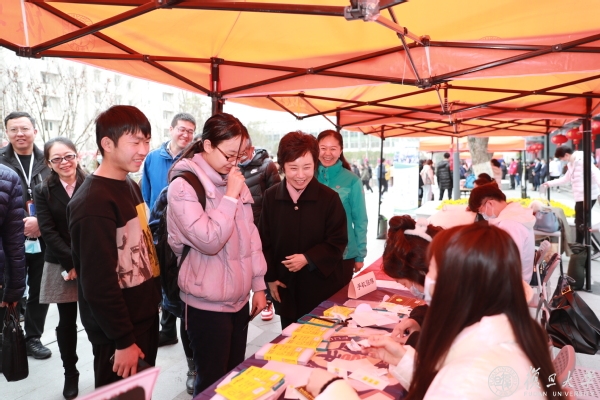 焦扬一行来到摊位前,认真询问了学校青年志愿者的基本情况,并鼓励大家:“希望你们做得越来越好,奉献社会的同时也会收获成长!”
