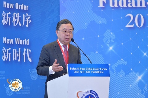 2018年5月18日,2018复旦·思源全球领袖论坛在复旦大学管理学院举行。本次论坛的主题为“新技术·新秩序·新时代”,原联合国粮食与农业组织助理总干事、深圳华大基因董事长特别顾问王韧,英国上议院议员查尔斯·鲍威尔,硅谷银行荣休主席魏高思,恒隆集团有限公司董事长、恒隆地产有限公司董事长陈启宗发表主题演讲并参与圆桌讨论。