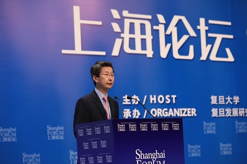 5月26日,“上海论坛2018”年会在上海国际会议中心隆重开幕。本次论坛的主题为“变动世界中的亚洲责任”。中国教育部国际合作与交流司司长许涛、复旦大学校长许宁生、韩国SK株式会社董事长兼首席执行官崔泰源出席论坛并分别致辞。开幕式由复旦大学党委书记、校务委员会主任焦扬主持。来自全球各地智库、高校、政府、企业、媒体等机构的嘉宾和代表共500余人参加了论坛。