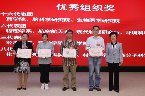 经提案委员会充分讨论并投票表决,本次教代会评选出“优秀提案奖”6个、“优秀组织奖”4个。焦扬、许宁生分别为获得六届五次教代会提案工作优秀组织奖、优秀提案奖的获奖单位代表及个人颁发了证书。