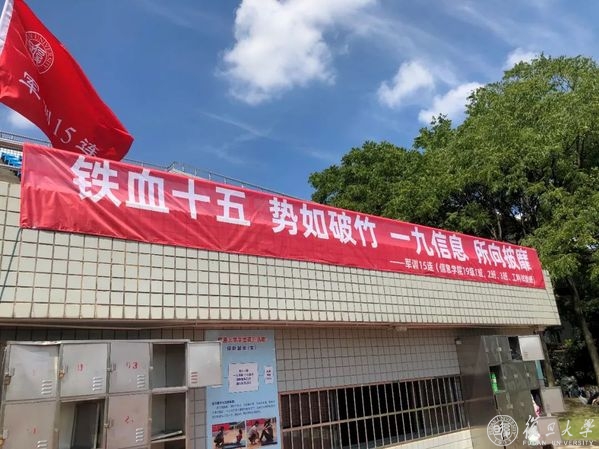 军训15连的口号条幅与队旗