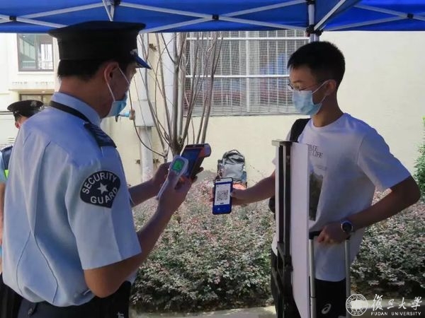 本次迎新工作努力简化报到流程,尽可能减少人员接触。学工部、医学学工部、保卫处与信息办联合,整合资源扩展服务,做到“两点一线”“主动出击”,将迎新工作关口前移,实现信息提前发布,部分手续提前网上办理,师生联系提前建立,极大地提高工作效率,提升精细化管理水平。学生通过迎新系统查询宿舍安排和各园区专用新生入口位置,对报到路线做到心中有数;通过微信“复旦eCard”和“复旦eHall”小程序提前领取虚拟校园卡,并线上确认返校信息,预先完成进校报到第一步,提升报到效率。当日,学生完成体温检测后,即可凭借虚拟校园卡轻松“扫码入校”,跟随志愿者实现入园点和宿舍楼“两点一线”之间的转移。