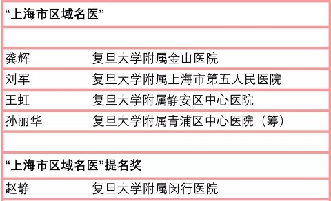 同时,经过推荐申报、各区初评、资格审核、网络投票等阶段,5位复旦医务工作者获得“上海市区域名医”,名单如下: