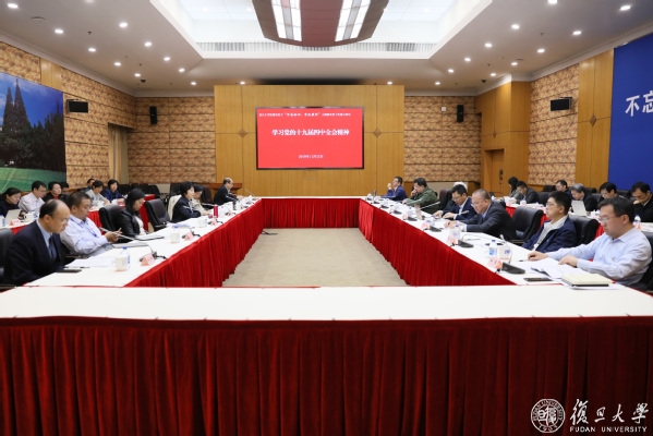 11月12日上午,复旦大学党委举行“不忘初心、牢记使命”主题教育第十次集中学习研讨。校领导班子围绕学习党的十九届四中全会精神进行交流讨论。校党委书记焦扬主持会议并讲话。校党委副书记、校长许宁生等学校党政领导班子成员参加学习。部分机关部处负责同志列席。