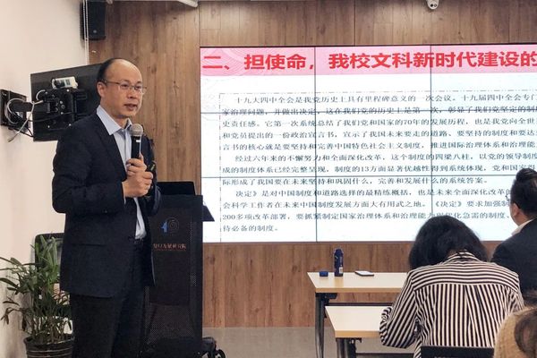 面向国际合作与交流处党支部和文科科研处、发展研究院、文科学报党支部的党员,校党委常委、副校长陈志敏于11月9日下午以“深入推进‘双一流’建设,增强服务国家的责任感和使命感”为题讲专题党课。