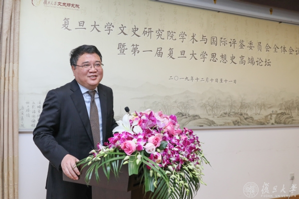许宁生向论坛的开幕表示祝贺,并向关心和支持文史研究院发展的学术与国际评鉴委员会委员表示感谢。他指出,当前,学校把融合创新作为“双一流”建设的核心理念,文史研究院就是学科融合创新的标杆之一,为学校探索人文社会科学领域的学科融合创新积累了宝贵经验。学校将继续推进人文社科领域学科融合创新,推动文理、医文等学科板块间的融合创新,传承好和发展好中华文明,并为世界文明进步作出贡献。希望文史研究院继续发扬复旦大学思想史研究的优良传统,在新起点上不断进行新的高水平融合创新,努力成为具有国际影响的思想史学科高峰。