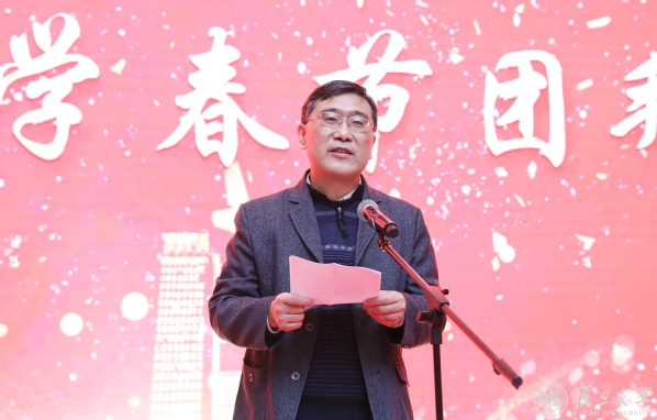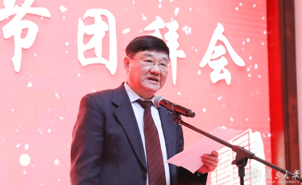 校长许宁生主持团拜会。他向全校广大教师、干部、职工和学生表示亲切问候和良好祝愿,向老领导、老教师、老同志们致以诚挚慰问和崇高敬意,向为学校事业发展所付出心血和智慧的复旦全体师生员工,向长期支持复旦大学事业发展的海内外校友和各界朋友表示衷心感谢。他说,开新局谋新篇,让我们更加紧密地团结在以习近平同志为核心的党中央周围,保持奋发有为、昂扬奋进的工作状态,坚持脚踏实地、求真务实的工作作风,发扬敢闯敢拼、乐于奉献的工作精神,全面开启中国特色世界顶尖大学建设步伐,共同创造复旦更加美好灿烂的明天。