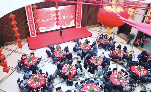 春回燕曦启新篇。1月14日上午的复旦大学光华楼13楼多功能厅内一派喜庆气象。一串串灯笼传递着热情洋溢的祝福,一盆盆水仙簇拥着欣欣向荣的年华。复旦大学2020年春节团拜会在此举行,学校师生代表近300人欢聚一堂、畅叙友情、共话未来。早早来到现场的老师们互致问候,亲切合影,笑容中满是新春的喜悦。