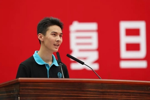 来自2018级临床医学八年制专业的张超尘代表全体2018级新生发言。在他的号召下,现场全体新生向出席开学典礼的高中校长们鞠躬致敬,表达对高中老师们辛勤育人的真挚敬意。他分享了自己选择医学专业的初心,号召所有新生“在复旦度过一段值得一生珍视和骄傲的大学时光”。