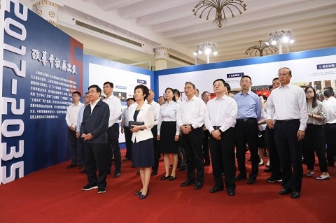 “一切伟大成就都是接续奋斗的结果,一切伟大事业都需要在既往开来中推进……奏响改革最强音,任重道远;挺立开放最前沿,使命在肩。”不少两委委员举起手机,拍下展览后记。