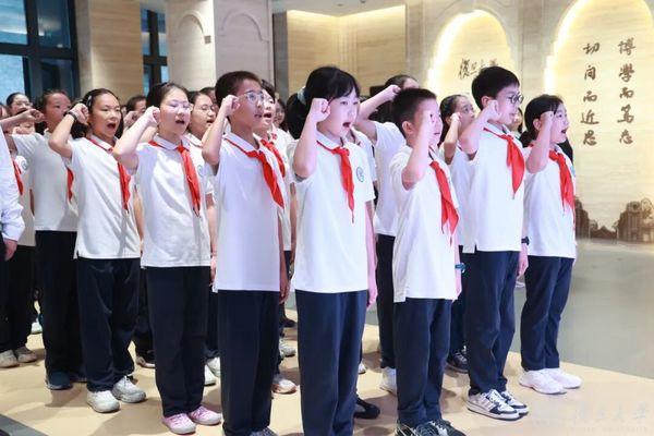 默哀完毕,来自复旦大学第二附属学校的少先队员唱响中国少年先锋队队歌《我们是共产主义接班人》,齐致队礼。