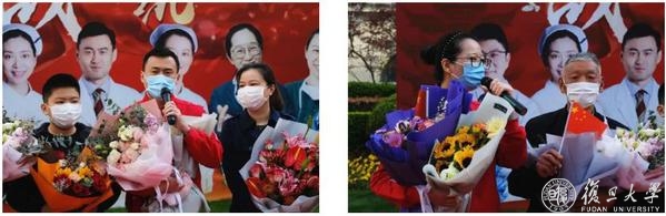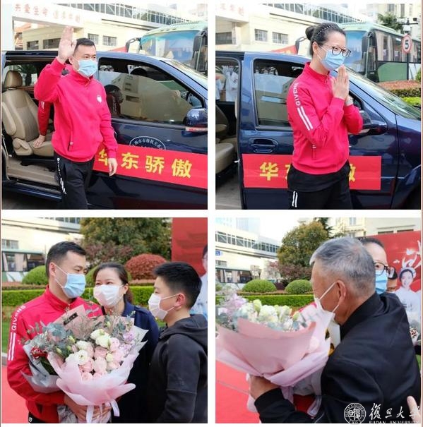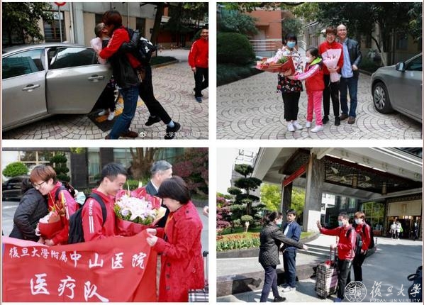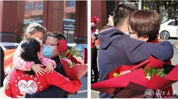 复旦大学附属中山医院、华山医院、华东医院、上海市第五人民医院,华山医院北院10名医护人员终于可以和亲人相拥了。