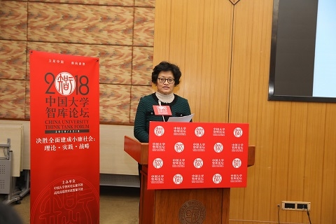 李卫红在致辞中指出,高校智库创办以来,在目标定位、资源整合、机制创新、评价激励等方面,全国高校有很多大建言胆的尝试、鲜活的做法,形成了很多好的研究成果,为中央和地方决策贡献了智慧和力量。五年来,大学智库论坛的成功举办,汇聚了全国高校智库的力量,推动了智库建设的创新发展,为党和国家提供了很多切实有效的政策建议,形成了一定的影响力和品牌效应。她强调,站在即将全面建成小康社会这样一个重大历史节点上,我国高校智库的发展必将迎来新的机遇和挑战。未来高校智库建设要坚持党管智库,引导高校智库围绕党和国家急需资政建言;坚持智库协同联动,形成政府“信得过”“靠得住”“用得上”的成果;坚持开放包容,“走出去”“引进来”并举,打造国际一流高校智库。高校智库要肩负起国家建设的光荣使命,在党的十九大和习近平总书记关于中国特色新型智库建设系列重要论述的指引下,加快构建中国特色哲学社会科学,努力实现“2020全面小康”的目标和“两个一百年”的宏图。